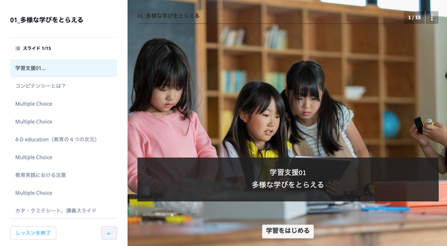 ・eラーニング+ワークショップのハイブリッド形式。eラーニングは1本8分未満の動画で、スマホでも受講可能。