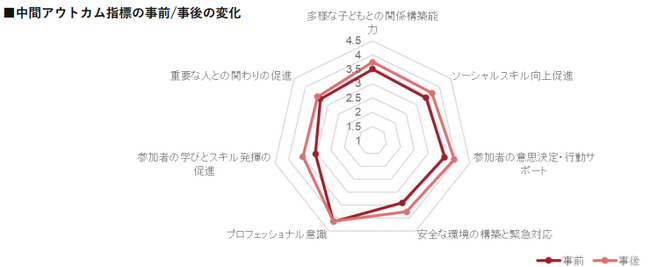 さらに、eDojoの受講によって間接的にもたらされることを想定したスタッフのコンピテンシーについて、「参加者の学びを促進する能力」「参加者の意思決定のサポート能力」「安全な環境作り」について有意な差が見られ、eDojoの受講が居場所のスタッフに求められるコンピテンシーの習得に寄与していることが、確認されました。