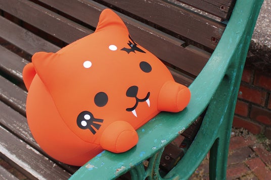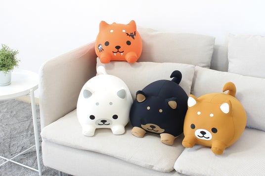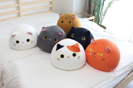 パウダービーズ(R)でできた、ふわふわのクッション。ぬいぐるみとしてだけでなく、クッションやお昼寝まくら、タブレットスタンド、背もたれにも使えます。大人から子どもまで幅広い年代に人気で、これまでにシリーズ累計10万個を販売しました。
