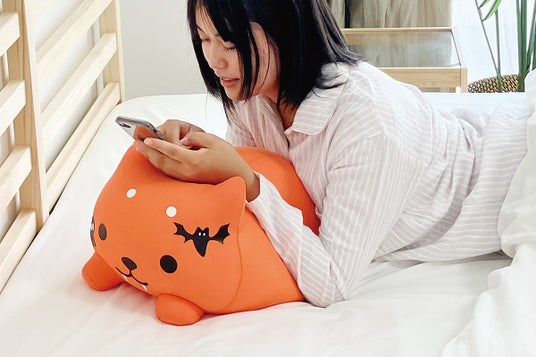 「もぐっち(R)み~たん ハロウィンver.」のサイズは約横29×縦24×高さ35cm、「もぐっち(R)わんわん ハロウィンver.」のサイズは約横27×縦29×高さ40cm。クッションとしてはもちろん、スマホやタブレットを見るときの肘置きや昼寝のときの枕など、さまざまなシーンで使える便利な大きさです。
