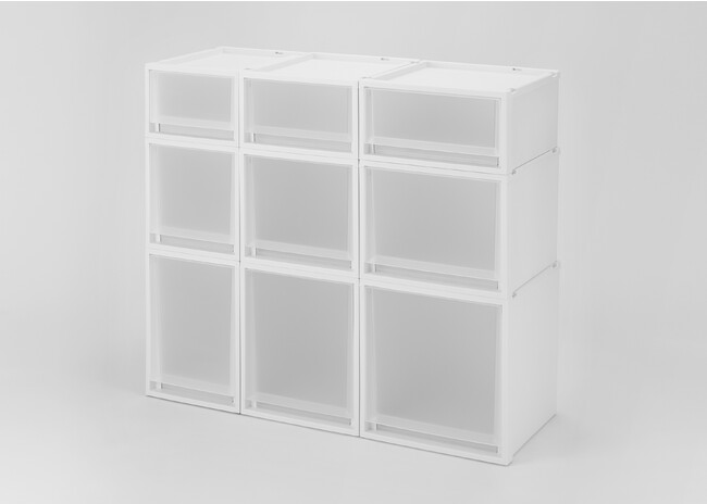 収納スペースが限られるひとり暮らしのワンルームでも置きやすいコンパクト性とシンプルなフェイスデザインを追求しつつ、フィッツケースの期待を裏切らない高い堅牢性を実現しています。使いやすさにこだわった9つのサイズ、連結できる棚板アイテムや別売りのキャスター、選べるカラーバリエーション4色と多様な暮らしに寄り添う豊富なラインナップで、皆様の快適な暮らしを応援いたします。