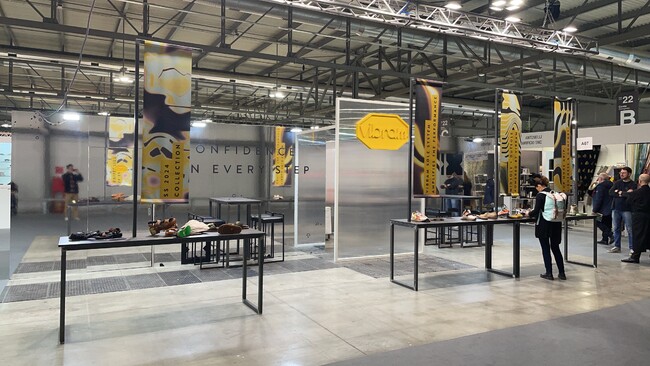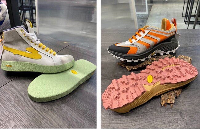 今回の出展にあたりヴィブラムでは、コンセプトモデルとしてプロトタイプコレクションを制作し、「ソールシステム」と「SS24コレクション」の2つのテーマにて製品の展示を行いました。