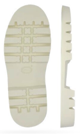 婦人靴のために作られたフラットなダイカットソールは、特別な幾何学的デザインで、靴にエレガンスを与えます。