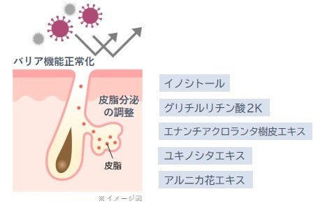 *1 皮膚科の知見をヒントに生まれた処方設計 *2 皮膚コンディショニング成分 *3 INCI名(化粧品成分の国際命名法)として初めて登録された化粧品原料(2022年登録)*4 イノシトール/グリチルリチン酸2K/エナンチアクロランタ樹皮エキス/ユキノシタエキス/アルニカ花エキス(すべて皮膚コンディショニング成分)