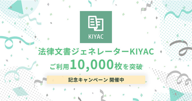 この度、株式会社BAMBOO INCUBATOR(本社:大阪市中央区、代表取締役:千葉直愛(弁護士))が提供する、簡単な質問に答えるだけで法律文書を自動生成できるWebサービス KIYAC (キヤク)のご利用枚数が10,000枚を突破したことを記念して、記念割引クーポンを発行します。