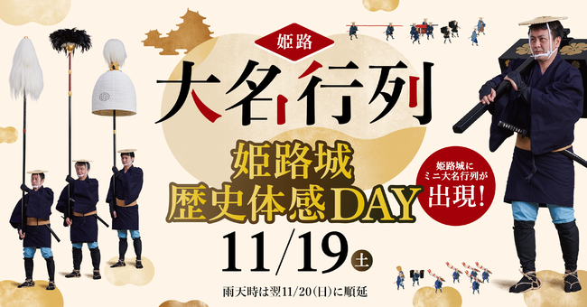 江戸時代の雰囲気が感じられる「行列所作」の披露のほか、ご来城のみなさまとの写真撮影タイム、制作調度品としては2番目に重い「茶弁当箱」などの持ち上げ体験コーナーを設置し、城内各所に見所をちりばめた「姫路大名行列・姫路城歴史体感DAY」にぜひお越しください。