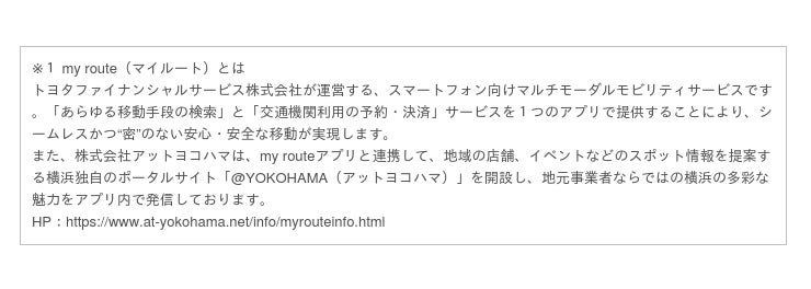 マルチモーダルモビリティサービス 『my route(マイルート)※1』 を横浜で展開する株式会社アットヨコハマ(本社:横浜市神奈川区栄町7-1/代表取締役 上野 健彦、宮原 漢二)は、地域密着のタウンニュース社と連携し、タウンニュース※2(横浜市中区・西区版)に掲載される街の身近なニュースや生活情報など、より充実した情報をmy routeアプリでご覧いただけるよう、12月1日(水)から掲載を開始します。