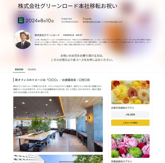 また、祝い花に関する業務は全て「matomeruプラットフォーム」で一括管理ができるため、お祝いに関する業務の効率化だけでなく、オフィス移転や役員就任などの多様なシチュエーションにも、シームレスに対応しています。