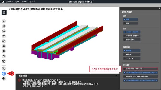 熟練の構造設計技術者の代わりとなる革新的な設計自動化アプリケーションです。構造解析・計算・照査・図面作成・3D化・資料作成といった一連の作業をシームレスに行うことができ、部材の数値を入力するだけでBIM/CIMモデルへ即時反映される直観的な操作画面を備えております。また、技術的な知識をフォローする操作ガイダンスやアラート機能も搭載し、使いやすさも追求しました。さらに、AIを活用した設計最適化機能により、経験不足による入力ミス、基準の見落とし、判断ミスなどのヒューマンエラーを補正します。これにより、誰でも正確かつ熟練者レベルの高品質な構造設計ができるような未来を創ります。