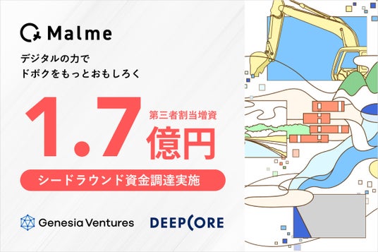 土木技術者集団によるスタートアップ株式会社Malme(東京都千代田区、代表取締役:高取佑)は、ジェネシア・ベンチャーズとDEEPCOREを引受先とする第三者割当増資により、シードラウンドにて1.7億円の資金調達を実施しました。