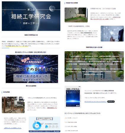 相続工学研究会特設サイトでは、相続工学研究会の取り組みや、第2回カンファレンスの映像、相続工学研究会マガジンなどを掲載しています。
