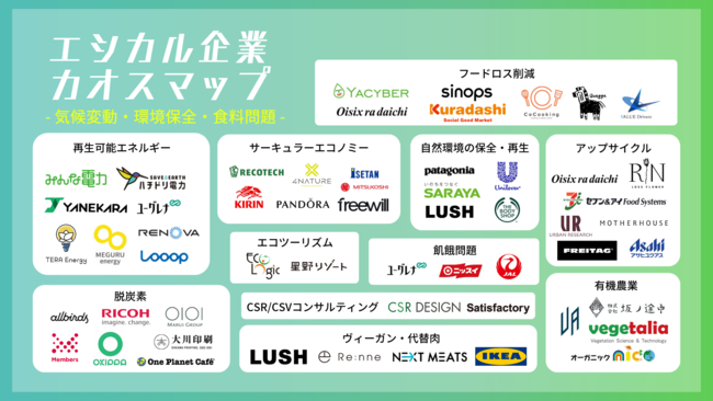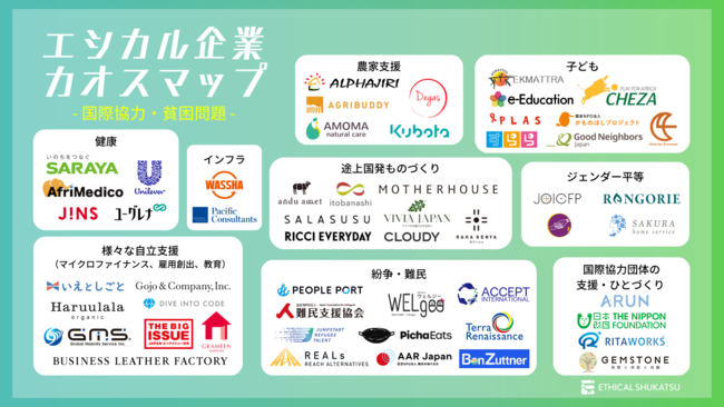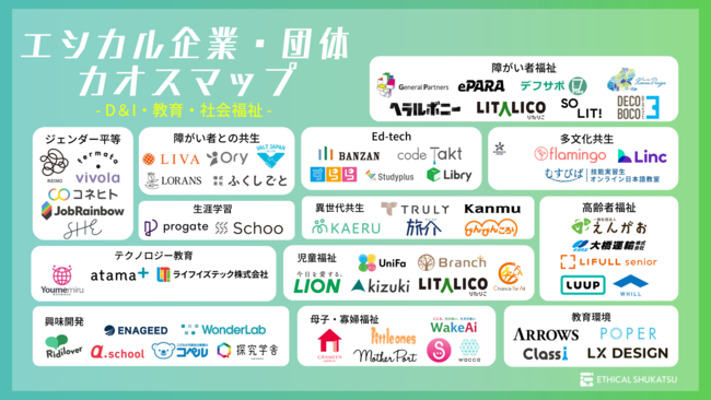 「テクノロジーで産業界のSXを加速させる」をミッションに、サステナビリティに力を入れている企業と学生をマッチングする「エシカル就活ーETHICAL SHUKATSUー」(以下、「エシカル就活」)を運営する株式会社アレスグッド(本社:神奈川県鎌倉市、代表取締役CEO:勝見仁泰)は、社会課題解決に取り組む企業をまとめたエシカル企業・団体カオスマップを公開しました。