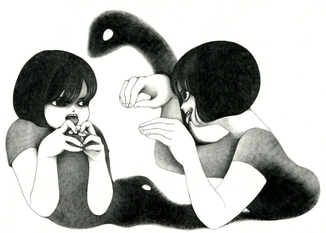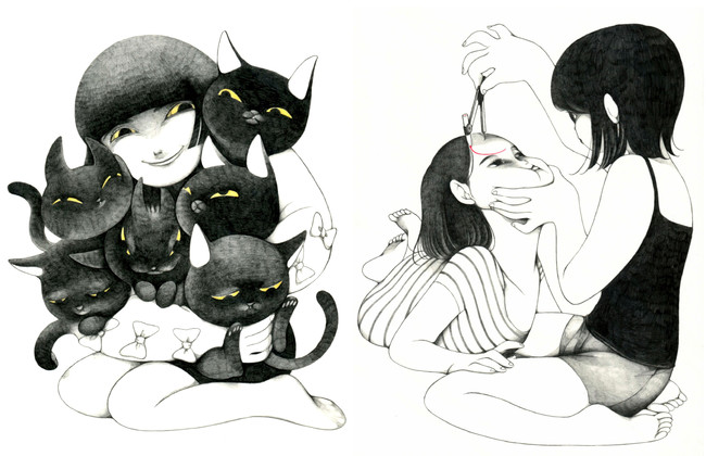 本展では、生きづらい少女たちの普通じゃない日常をテーマに、鉛筆とシャーペンで描かれた70点以上のモノクロ作品が展示されます。また、Tシャツ・トートバッグ・ZINEなどのグッズが販売されます。