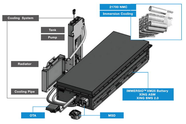 台湾、XING Mobilityとの協業を進めている、液浸冷却バッ