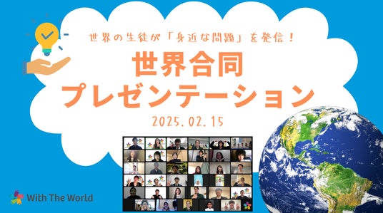With The Worldは、2025年2月15日に世界の中高生が身近な問題について、5年以内に解決できる仕組みを提案するプレゼンテーション大会、「世界合同プレゼンテーション」を開催いたします。なお応募締め切りは、12月8日となっております。ご参加をご希望される場合は、こちらのフォームよりお申し込みください。