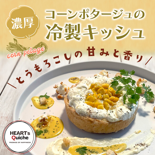 キッシュ専門店「HEART's Quiche」より子どもから大人までみんな大好きコーンポタージュを冷製キッシュに。2022年9月22日(木)より発売致します。【URL】https://hearts-quiche.com/products/potage