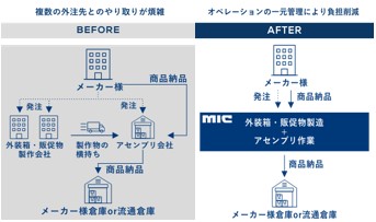 MICでは印刷物の制作から、商品の梱包、キッティングまでを一貫してサポートする「流通加工サービス」をご提供してきました。今後は、化粧品、医薬部外品においてもご提供が可能となります。
