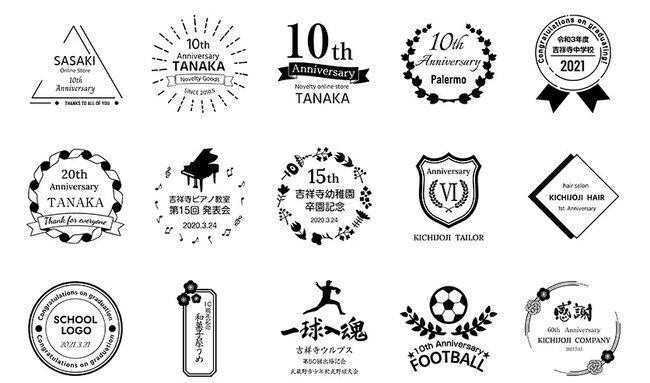 無料のテンプレートやスタンプを約300種類用意しており周年記念や卒業記念などの目的別にデザインを探すことができます。手持ちのロゴデータや画像を入れることも可能です。作成したデザインはメールやLINEで共有することもできま