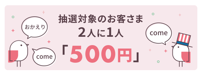 抽選対象のお客さま2人に1人「500円」プレゼント!