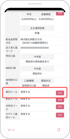▼案内メールを「受信する」に設定する方法(CONNECTアプリ画像)