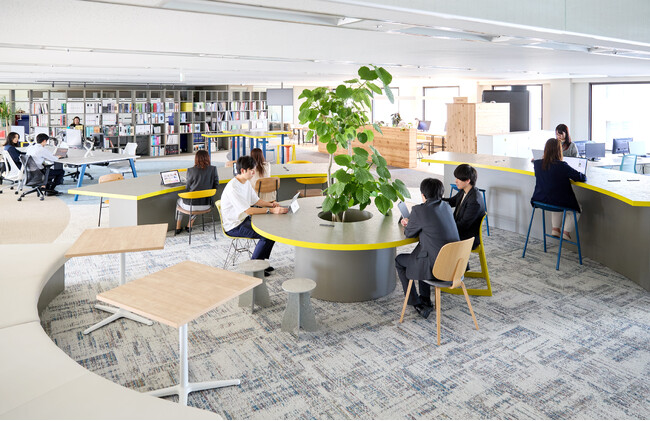「+1℃」をコンセプトとして、人や自然とのつながりが循環する[サステナブルオフィス]としてデザイン。廃棄物を限りなくゼロにする「廃棄ゼロ」への挑戦をはじめとして、環境にやさしいマテリアルの厳選、ダイバーシティに対応したゆとりある空間設計を施した環境と社会にやさしい循環型オフィスです。