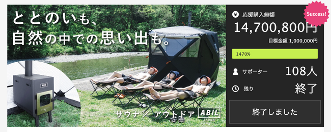 Makuakeで1470%達成! ”ABiLのテント&ストーブ”のテントサウナを体験できます!