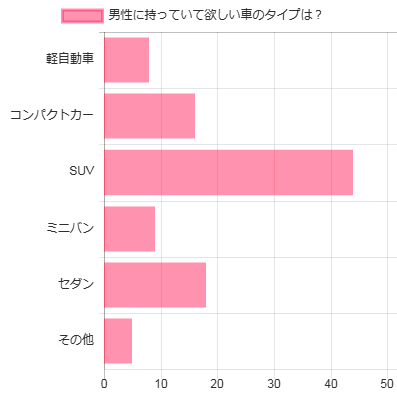 男性に車を所有して欲しいと思う女性が多い一方で、軽自動車でも問題ないという女性が多いことが分かりました。