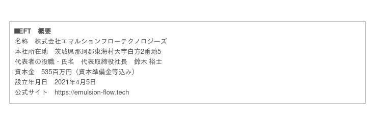 株式会社エマルションフローテクノロジーズ