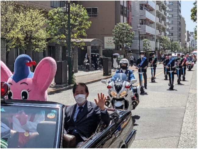 世界No.1マイクロモビリティサービスBIRDを日本で展開するBRJ株式会社(読み方:ビーアールジェイ かぶしきがいしゃ 本社:東京都港区、代表取締役/CEO:宮内 秀明、以下「BRJ」)は、4月10日11時より、電動キックボード「BIRD(バード)」を地域住民に安全利用いただくことを目的として、三鷹署が実施する交通安全車両パレードに初参加しました。