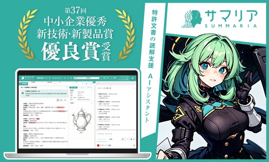パテント・インテグレーション株式会社(本社:東京都千代田区、代表取締役CEO:大瀬佳之)の、特許読解支援AIアシスタント「サマリア」が、公益財団法人りそな中小企業振興財団と日刊工業新聞社が主催、中小企業基盤整備機構と経済産業省中小企業庁が後援する第37回「中小企業優秀新技術・新製品賞」のソフトウエア部門において栄えある『優良賞』を受賞いたしました。