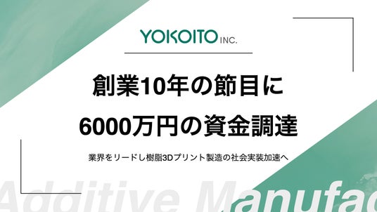 株式会社YOKOITO(本社:京都府京都市、代表取締役:中島 佑太郎、以下YOKOITO)は2024年3月に創業10周年を迎えるにあたり、個人投資家より6000万円の資金調達を実施しました。この資金調達は、樹脂におけるAdditive Manufacturing(以下樹脂AM)の社会実装に向けた急速な拡大フェーズに備えるため、そして日本経済における持続可能な生産性向上手段を提供するための重要なステップとなります。