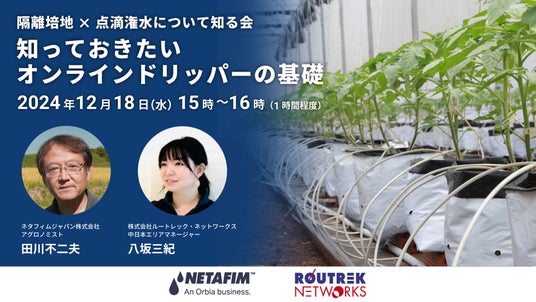 ネタフィムジャパン株式会社(本社:東京都中央区日本橋中洲5-10、代表:ジブ・クレメール、以下ネタフィムジャパン)は、株式会社ルートレック・ネットワークス(本社:神奈川県川崎市 代表取締役社長:佐々木伸一、以下ルートレック)と、共同ウェビナーを開催。
