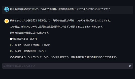 【アバターのバーチャルアドバイザー】 【NISAつみたて枠・成長枠配分提案】