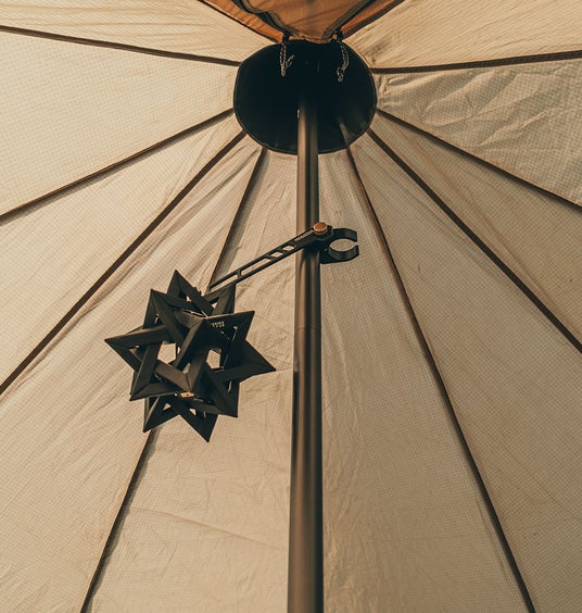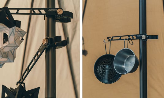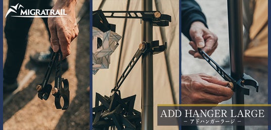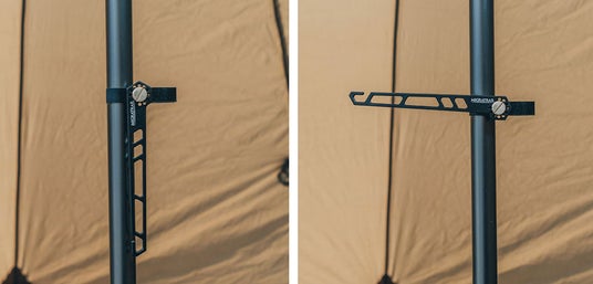 付け足して広がる利便性、ワンポールテントのポールやタープの大径メインポールサイズに対応したマルチハンガー。