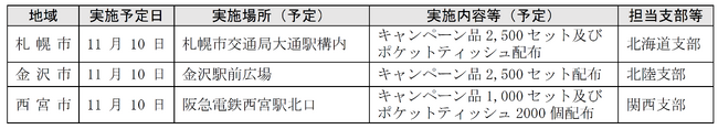 表1 街頭キャンペーン等の実施日、実施場所及び実施内容(予定)
