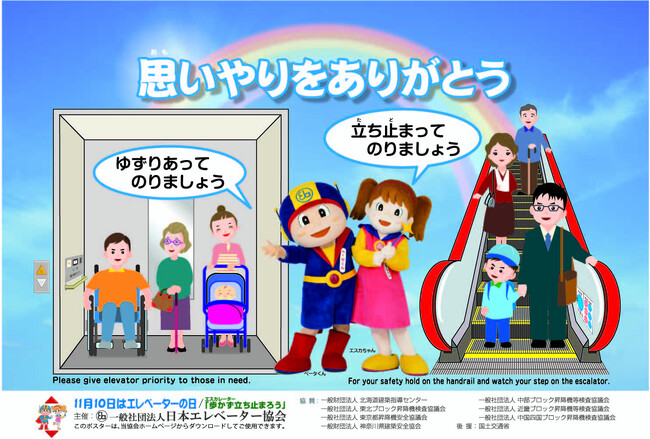 当協会が1979(昭和54)年に制定した11月10日「エレベーターの日」に合わせ、エレベーター・エスカレーターの利用における更なる安全意識の浸透を目指し、「エレベーター・エスカレーター安全利用キャンペーン」を全国で実施します。