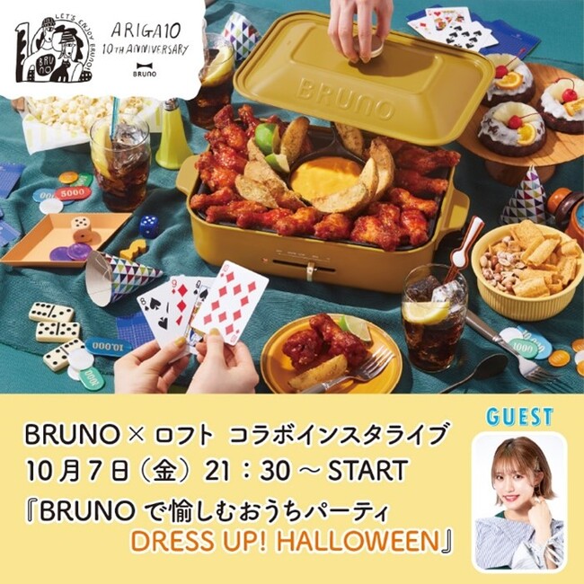 BRUNOは今年9月にブランド10周年を迎えました。アニバーサリーイヤースタートを記念し、10月7日(金)にロフトとのコラボイベントとして、渋谷ロフトよりインスタライブ「BRUNOで愉しむ(たのしむ)おうちパーティ DRESS UP!HALLOWEEN」を配信いたします。特別ゲストにはタレントの王林さんが出演。