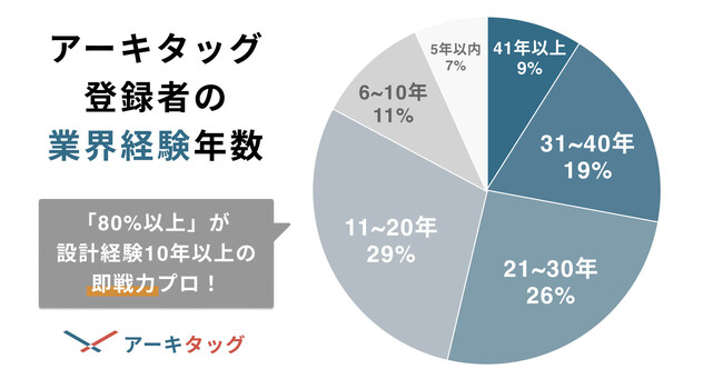 「アーキタッグ」登録者の業界経験年数:即戦力人材が多数在籍