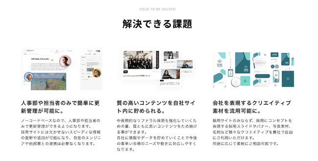 具体的には、gaz社がwebサイトの情報設計、デザイン、実装、ディレクションを担当し、nowhere社が実写映像やモーショングラフィックなどのコンテンツ制作を行います。これにより、企業の魅力をビジュアル的に強調し、 求職者の注目をひくことが期待できます。また、企業が自身のブランディングを強化し、中長期的に優秀な人材を獲得する一助となるこの取り組みは、nowhereとgazの特性と経験を生かすことで、中小企業の採用競争力を一段と高めることを目指します。