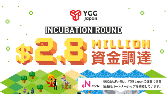 株式会社ForN(読み:フォーン、本社:東京都港区、代表取締役:藤原哲哉、以下「ForN」)は、ForNとパートナーシップを締結する「YGG Japan」が、インキュベーションラウンドでInfinity Ventures Crypto、Animoca Brands、YGG、YGGSEA、その他6社及び投資家から2.8百万米ドルの資金調達を完了したことを発表いたします。
