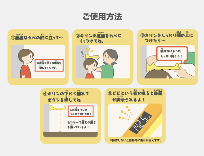 その場で頭に当ててじっとしていなくても床面との距離を音波センサーで計測できますので、育ち盛りの元気なお子様にもぴったり!日々の成長を楽しみながら測れます。