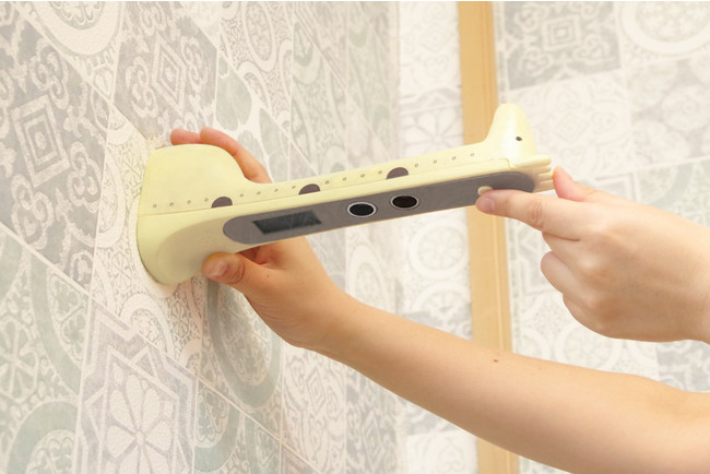 壁沿いに立ち、身長計を高さに合わせてボタンを押すだけ!ピピっと3秒ほどで簡単に計測できます!