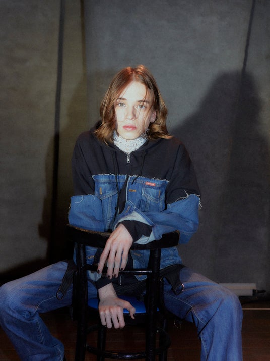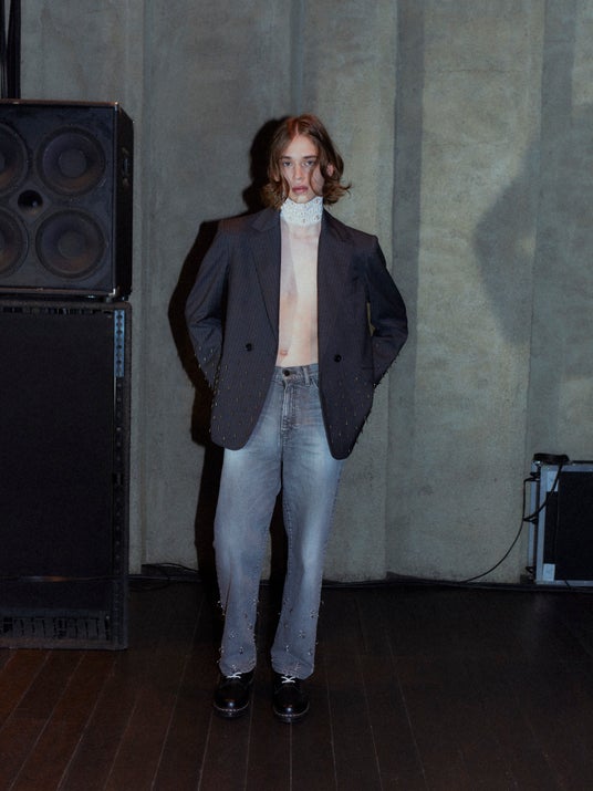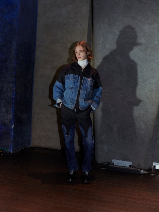 DENIM REBUILD HOODIE ¥32,000+tax SUSPENDED DENIM SLACKS ¥28,000+tax