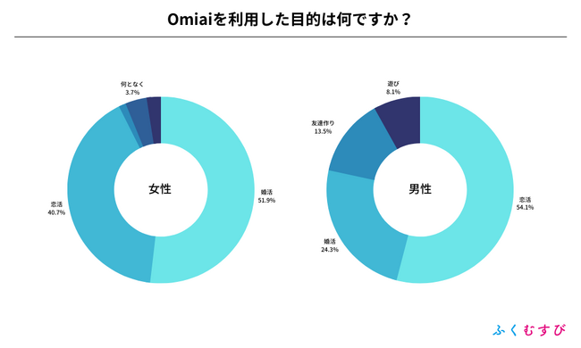 ・男性がOmiaiを利用した目的は、恋活が1位、遊びが2位となりました。