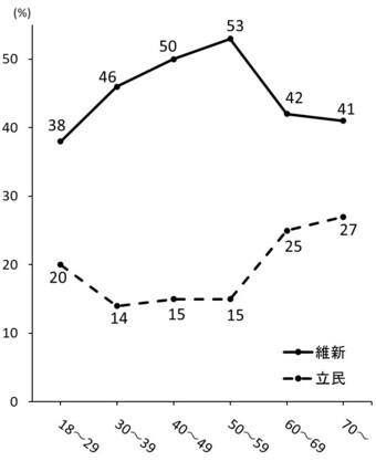 【図2】「立民と維新、どちらに期待するか」(年齢別)