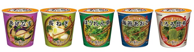 すぐ旨カップみそ汁 あげなす、すぐ旨カップみそ汁 長ねぎ、すぐ旨カップみそ汁 ほうれん草、すぐ旨カップみそ汁 海苔あおさ、すぐ旨カップみそ汁 とろろ昆布