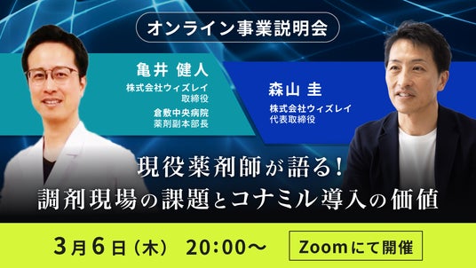 3月3日(月)に、株式会社ウィズレイ代表取締役の森山が「コナミルは世界の医療をどう変える?ウィズレイ事業説明会」をテーマにウェビナーを行いました。