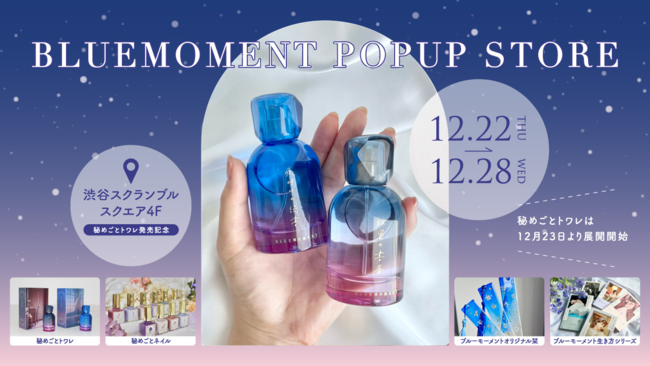 コスメブランド「BLUEMOMENT」が新作の香水の発売を記念して、12月22日(木)~12月28日(水)、渋谷スクランブルスクエアにてPOPUP STOREを開催する。