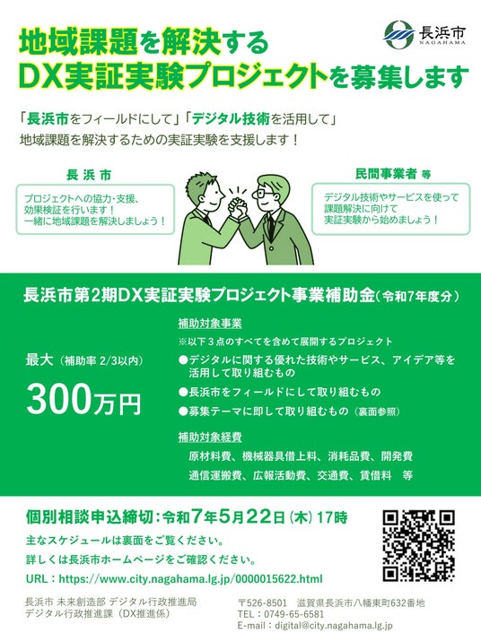 「令和7年度 長浜市第2期DX実証実験プロジェクト事業」プロジェクト実施者公募のお知らせ
