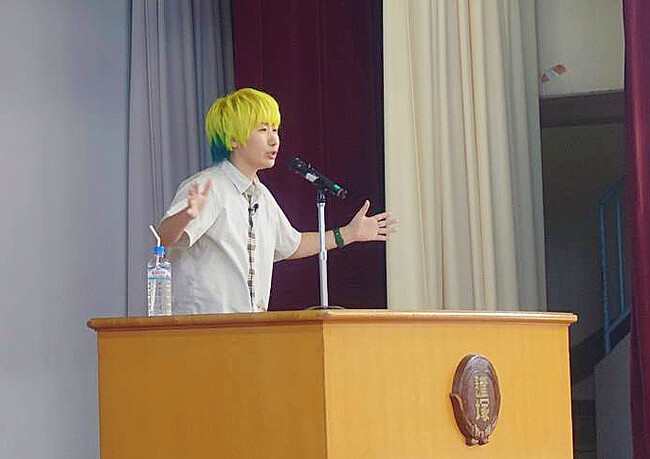 その次は「声優と生徒との朗読劇」。声優と代表生徒6人が檀上にて、朗読劇を行いました。プロの声優と一緒に朗読劇を行う経験は子供たちにとって大変貴重な経験になりました。